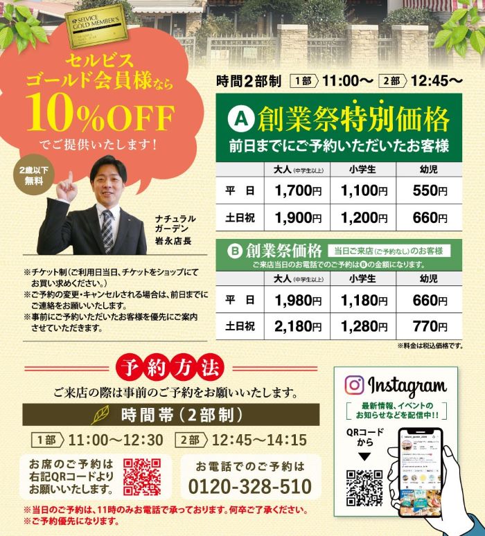 ※当日のご予約は、11時のみお電話で承っております。何卒ご了承ください。【TEL:0120-328-510】