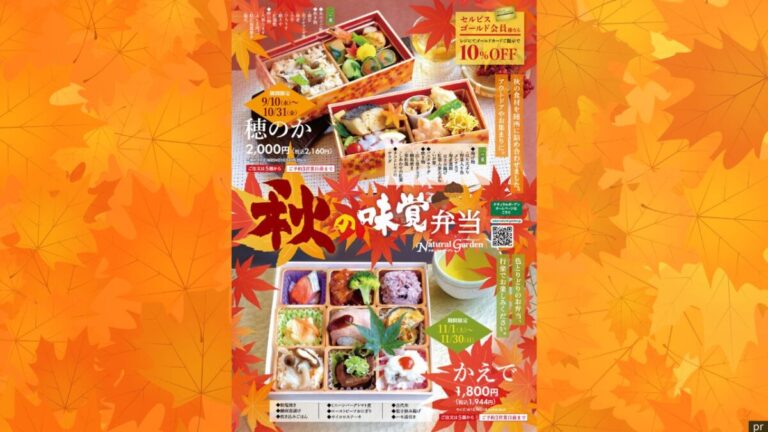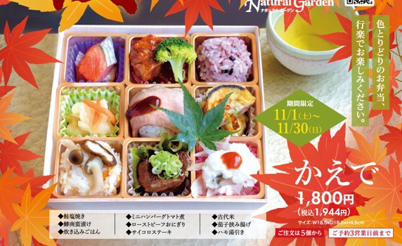 堺市中区の深井駅から徒歩8分。自然食のレストラン&ショップ ナチュラルガーデンでは、期間限定で味覚弁当の予約が始まっていますよ。