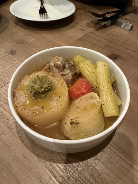 イタリアンおでんは、どれもほっくほくでポトフみたいな感じです。セロリやトマトもとろとろに煮込まれていて、豚の角煮はお箸でほろほろっと崩れるほどでした♡