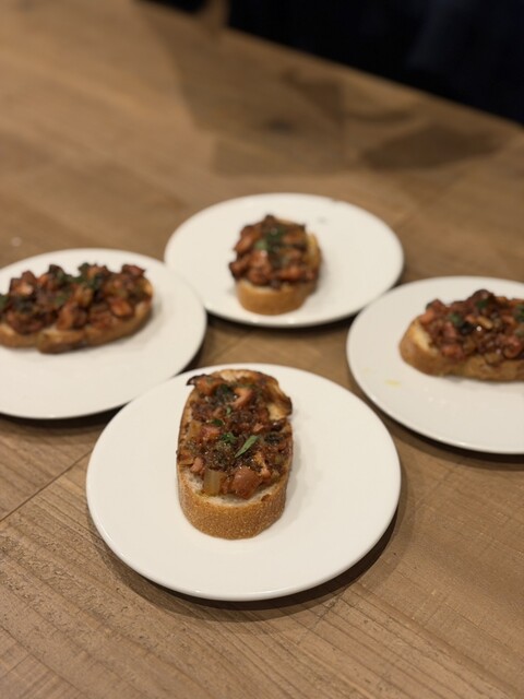 つきだしはタコのトマト煮込みが乗ったブルスケッタ