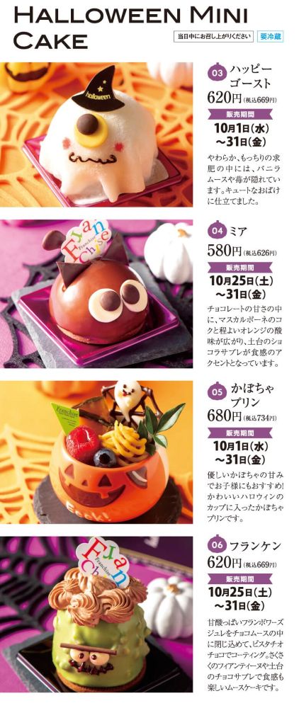 | ハッピーゴースト | 620円 (669円) | 10/1(水)〜31(金) | やわらかもっちり求肥の中には、バニラムースや苺が隠れています。 |