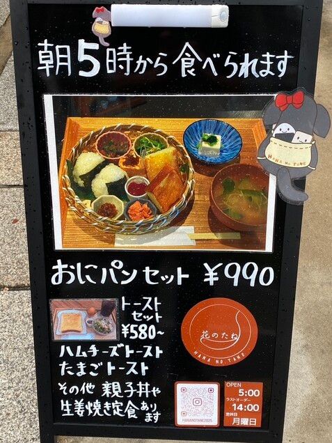 【祝オープン】朝5時オープン♬「おにぎり」と「パン」どっちも食べられる贅沢モーニング「おにパンセット」がおすすめ★「花のたね」が、オープンしていますよ!(※2025年8月公開)