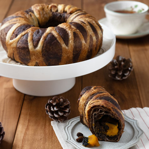 サクサクのチョコ生地に、ほっこり甘いカボチャ餡を巻き込んだ、見た目にもこだわった人気商品!