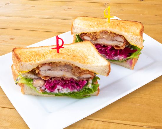 チキンの竜田揚げと根菜サラダ・ ビーツのマリネを挟んだ ボリュームあるサンドイッチです。
