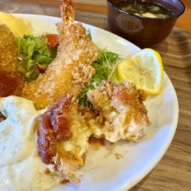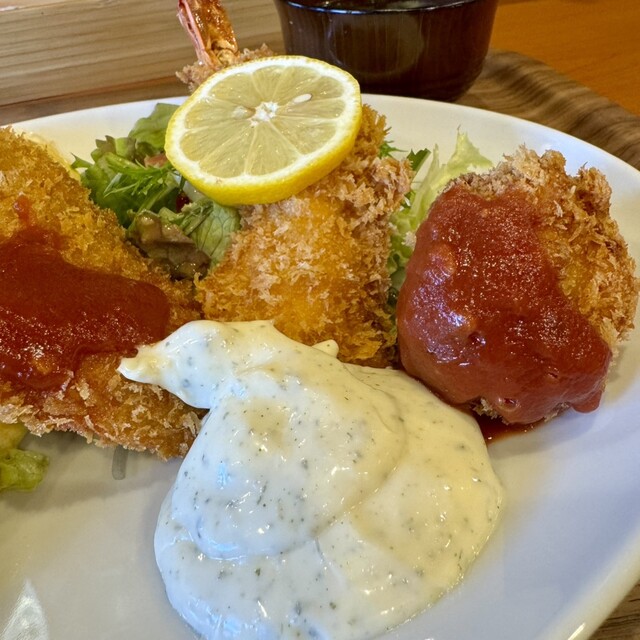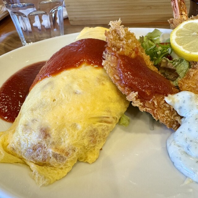 オムライスにクリームコロッケ・エビフライヘレカツの、大人のお子様セットです