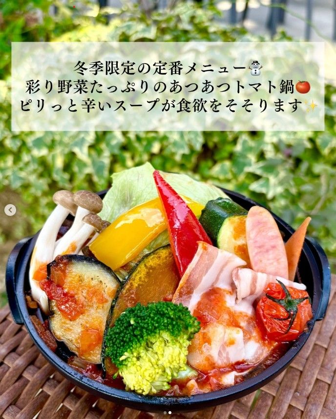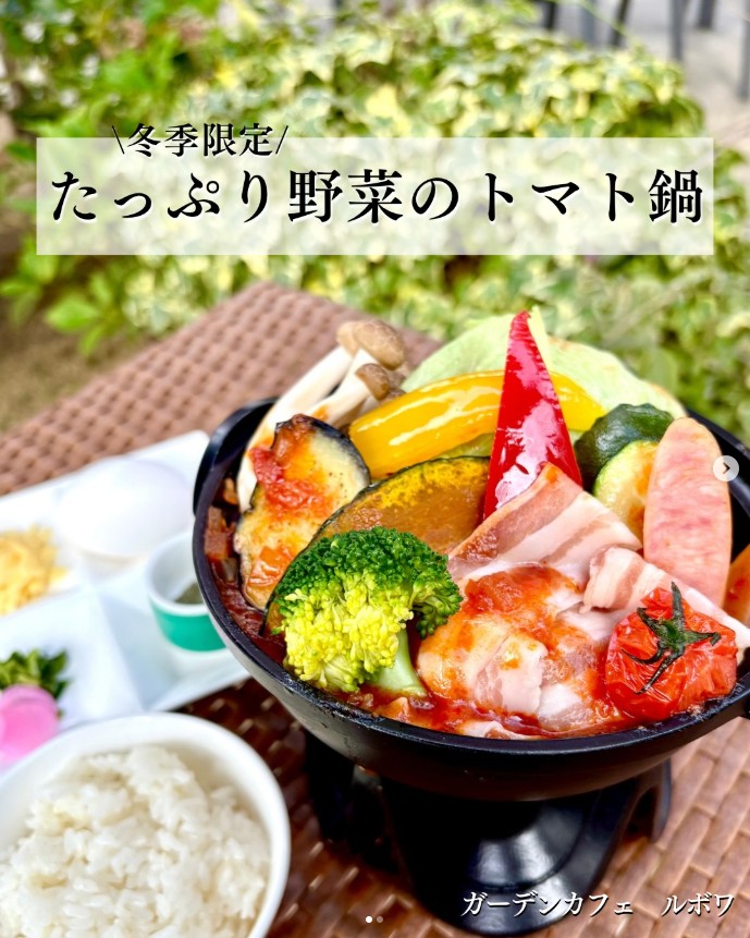 堺市中区・結婚式場併設の緑に囲まれたカフェ「ガーデンカフェ ルボワ」の冬季限定の定番メニュー!「たっぷり野菜のトマト鍋」