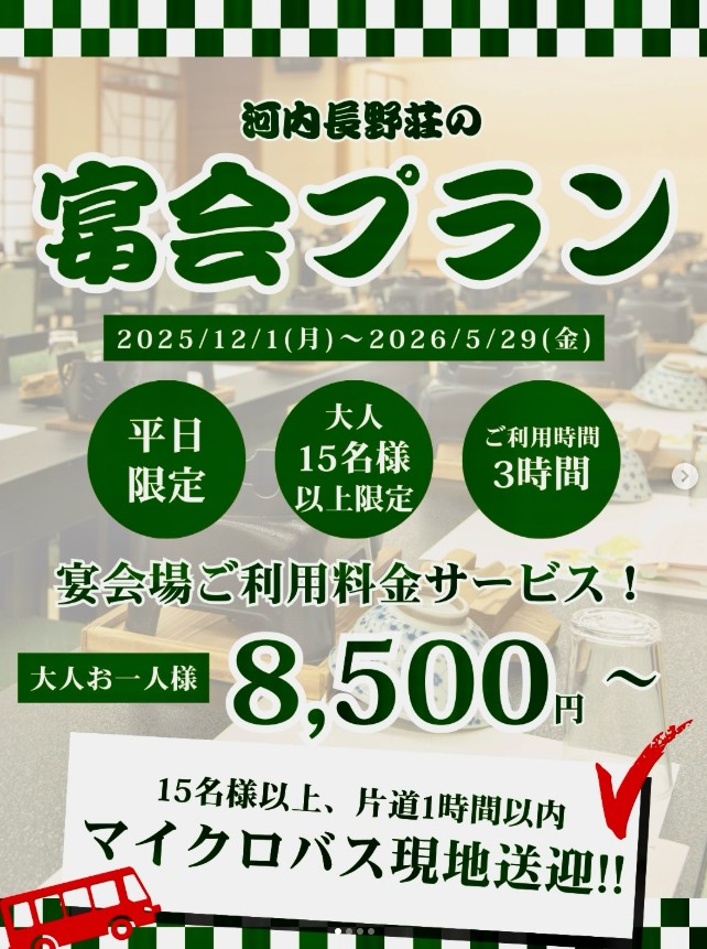マイクロバス現地送迎有!※15名様以上、片道1時間以内限定です