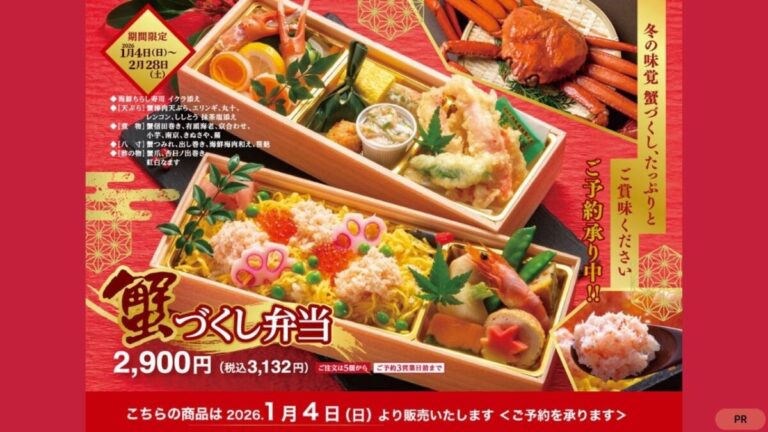 堺市中区にある自然食レストラン&ショップ ナチュラルガーデンでは、季節のおすすめ弁当『ナチュラルガーデンの蟹づくし弁当』が登場しています。