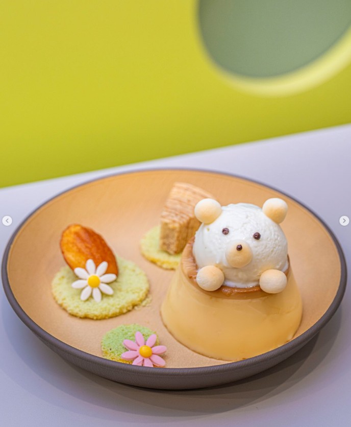 プリンの上には、可愛いくまのアイス♪