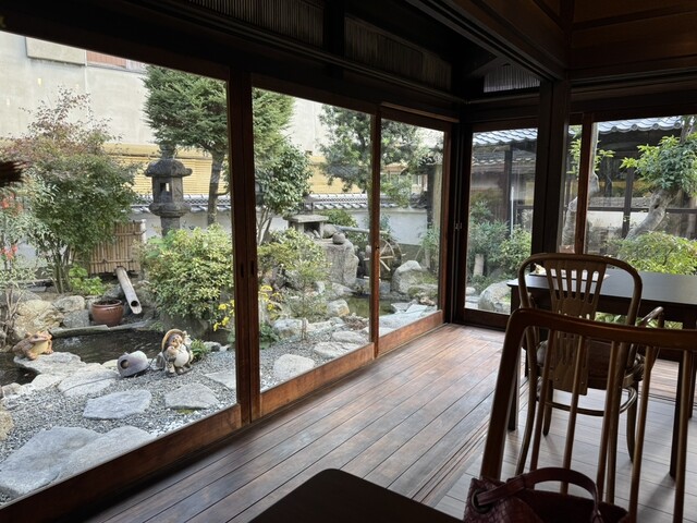 ガラス越しにお庭が見えますが、これがいい具合に心和ませる景色となっています。