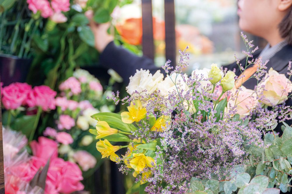 ▲大切な人の記念日に、花とお菓子をセットで贈るお客様も多いそう。