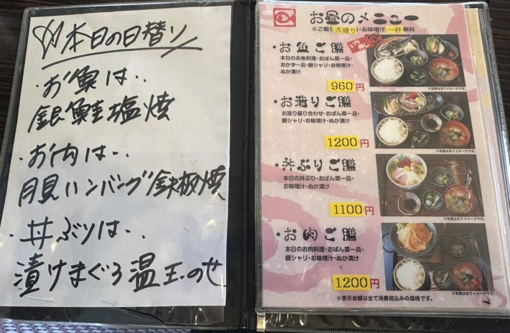 お魚以外にも、お造り、天ぷら、お肉、丼など、御膳のラインナップも豊富なので、その日の気分で選べるのが嬉しいですね。