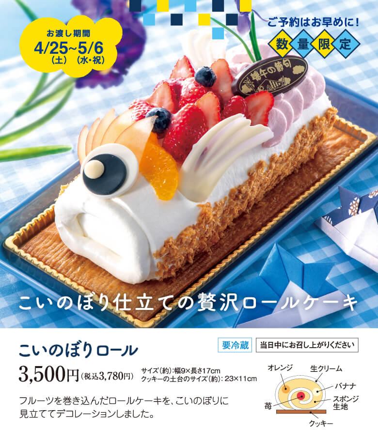 こいのぼりロール 3,500円(税込 3,780円)