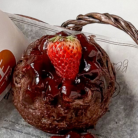 ショコラデニッシュにイチゴのゼリーを乗せて焼きこみました。