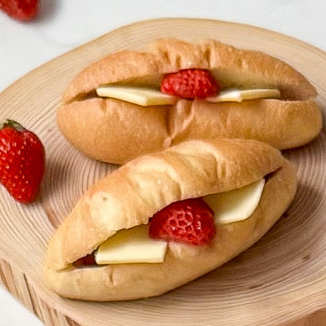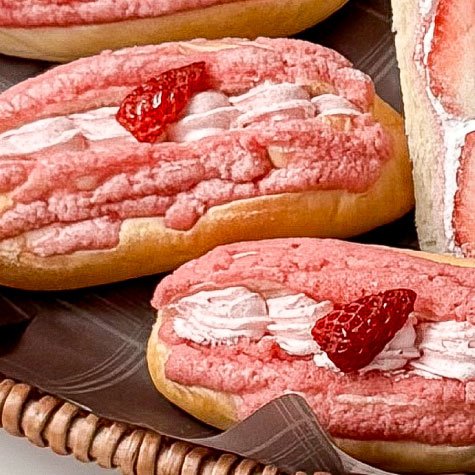そとはカリッと!中はしっとりした生地にあまおういちごあんとバターを挟みました!