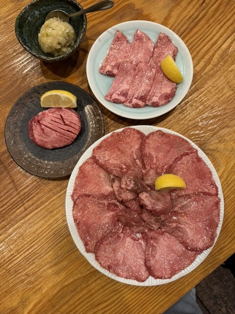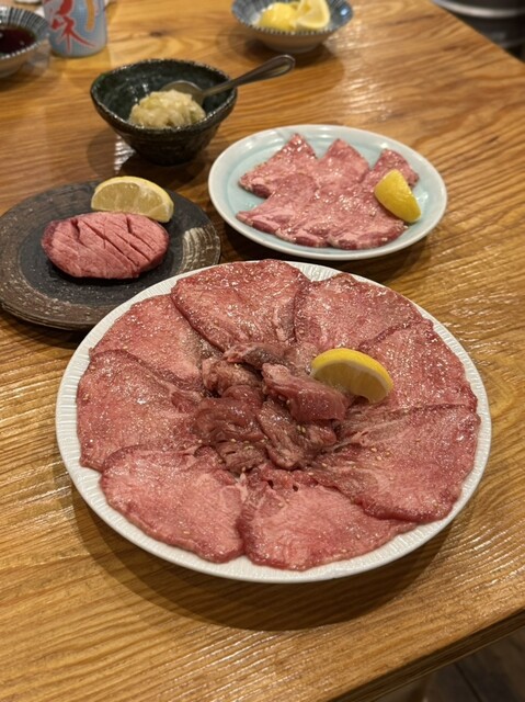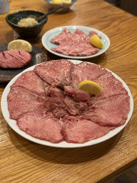 真ん中のタンは分厚くて柔らかくて噛むとしっかりお肉の味がしてめちゃくちゃおいしい周りのタンは薄切りで、薄切り派の私が一番好きなやつ♡