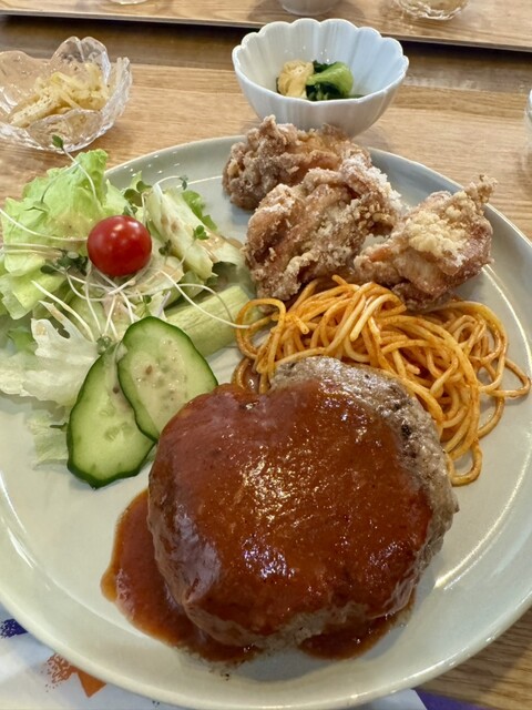 ハンバーグはつなぎが少なくお肉をしっかり感じるハンバーグでした