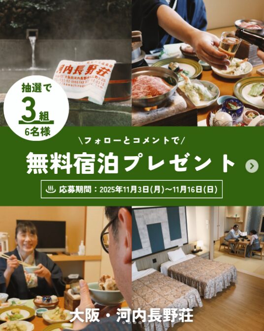 「“なにもない”が“ここにある”」というキャッチフレーズを持つ『河内長野荘』が、なんと「無料宿泊プレゼントキャンペーン」を実施中です!