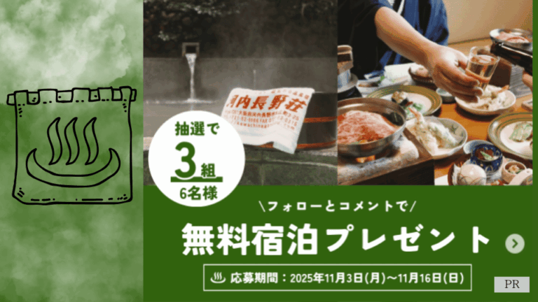 応募期間は2025年11月16日(日)までと残りわずか!日頃の疲れを癒やす静かなご褒美旅をぜひGETしてくださいね。