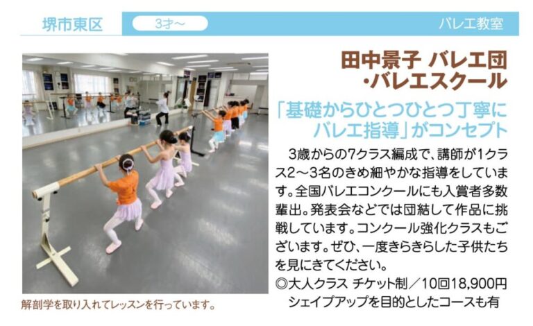 『田中景子バレエ団・バレエスクール』では、「基礎からひとつひとつ丁寧にバレエ指導」をコンセプトに3歳から大人まで、幅広く入会を受け付けています。