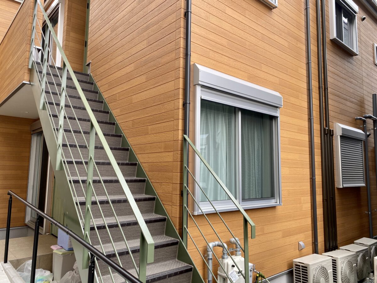 1階、2階が同じ造りの建物となっています。現在、入居を募集しているのは1階の角部屋です。