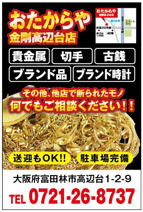 おたからや金剛高辺台店では、貴金属、切手、古銭、ブランド品、ブランド時計等…多種多品目の買取をいたしております。