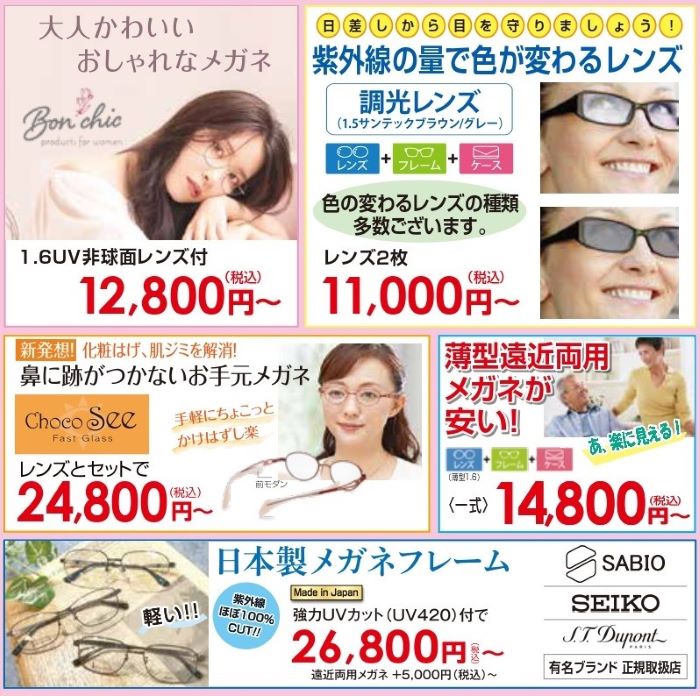 通常4,800円のメガネ(1.56UV非球面レンズ付)がなんと…