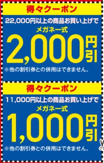 22,000円以上の商品お買い上げで、メガネ一式 2,000円引