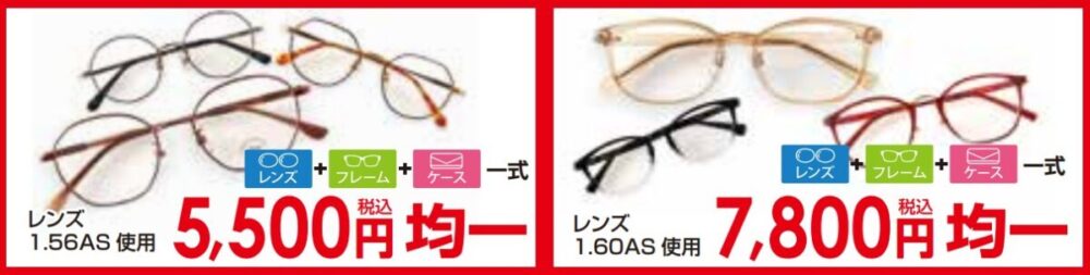 (※レンズ1.60AS使用の場合は一式7,800円(税込)均一となります)