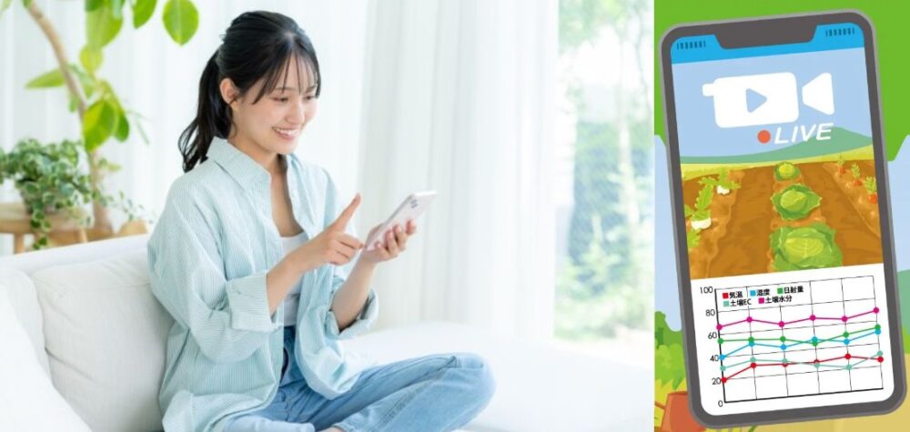 なんと、専用のスマホアプリで24時間いつでもLIVEカメラの映像から自分の畑の状況が確認できるんです!