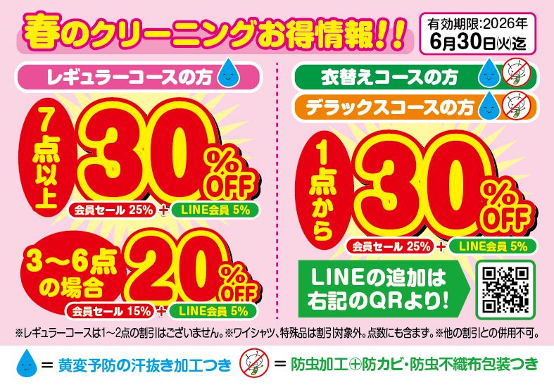 最大30%OFF!「春のクリーニングお得情報!!」も同時開催中♪
