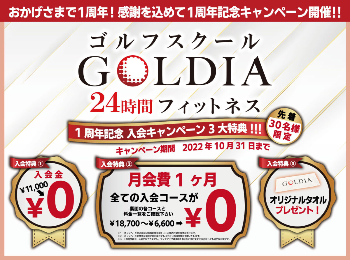 松原市にあるGOLDIA松原では、1周年記念 入会キャンペーンを実施中!