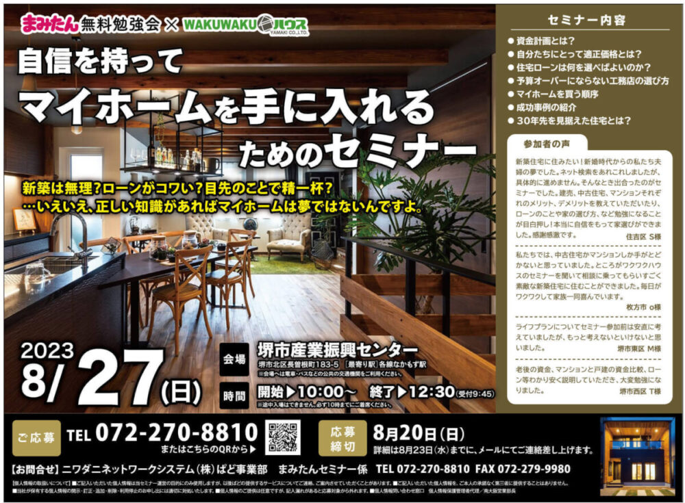 自信を持ってマイホームを手に入れるためのセミナー 参加者募集!
