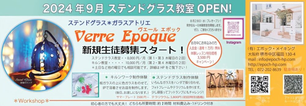 ステンドグラス*ガラスアトリエ『Verre Epoque(ヴェール エポック)』がOPEN!