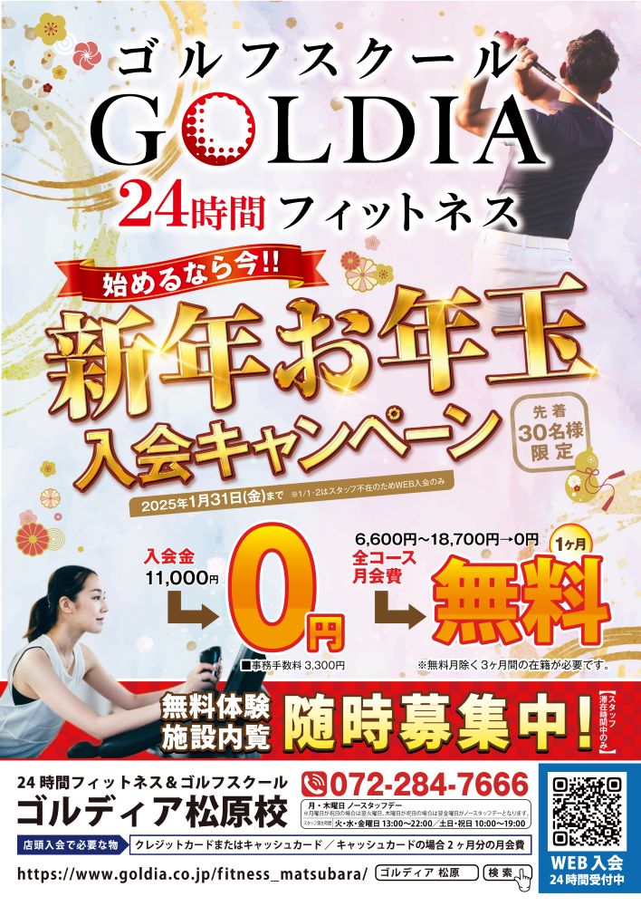 松原市にあるGOLDIA松原校では新年お年玉入会キャンペーンを実施!