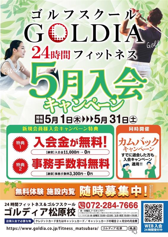 松原市にあるGOLDIA松原校では5月入会キャンペーンを実施!