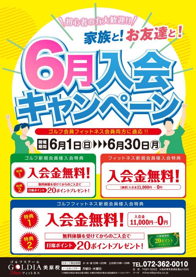 堺市美原区にあるGOLDIA美原校では、「6月入会キャンペーン」を実施します☆彡