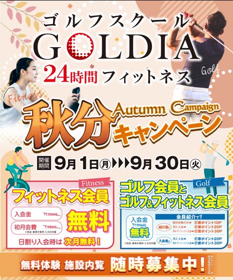 松原市にあるGOLDIA松原校では秋分キャンペーンを実施!