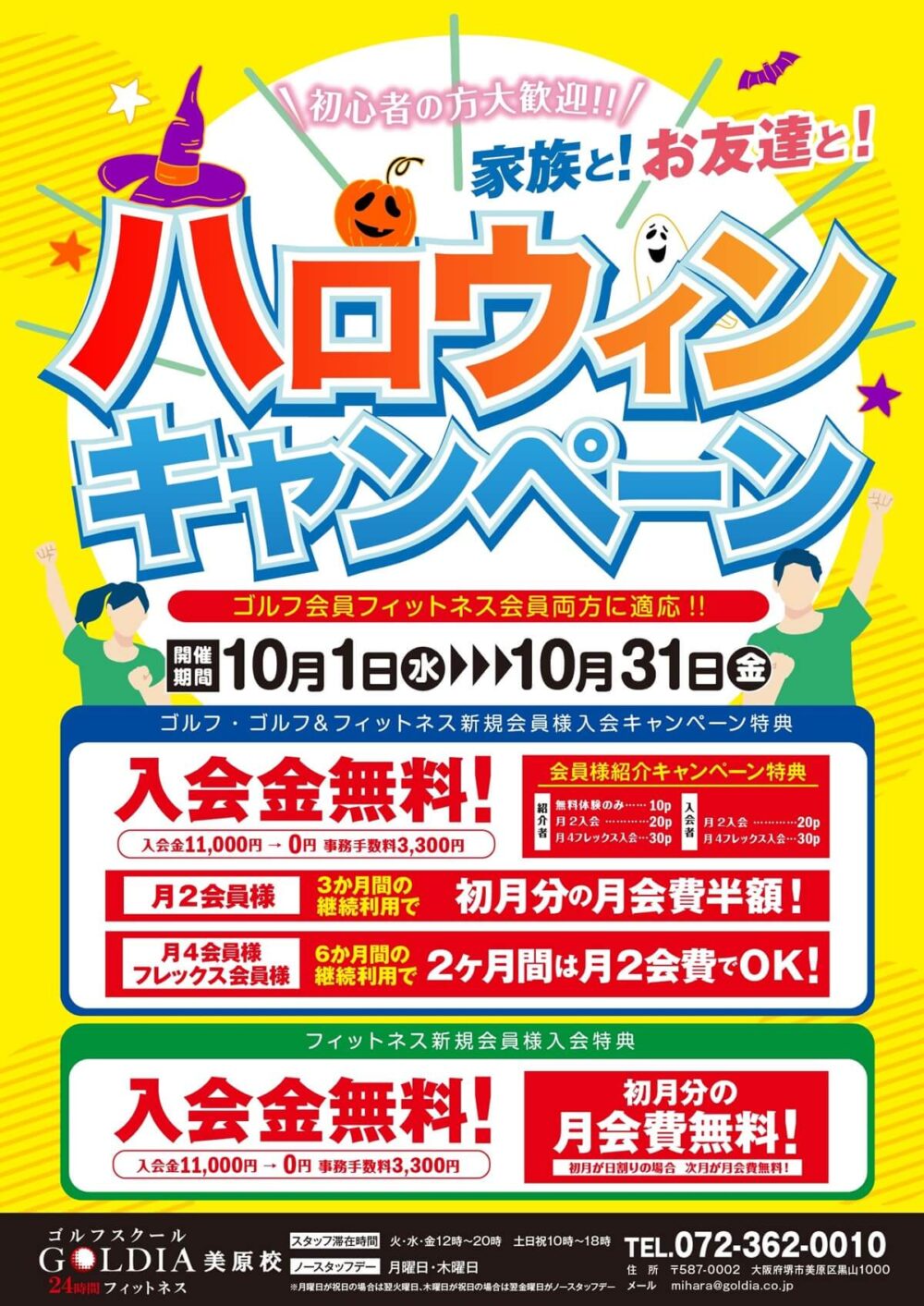 堺市美原区にあるGOLDIA美原校では、「ハロウィン入会キャンペーン」を実施します☆彡