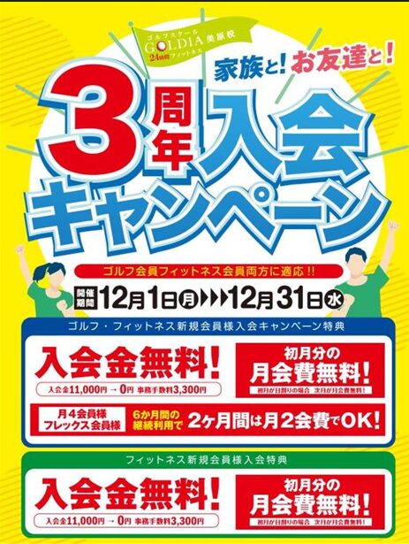 堺市美原区にあるGOLDIA美原校では、「3周年入会キャンペーン」を実施します☆彡
