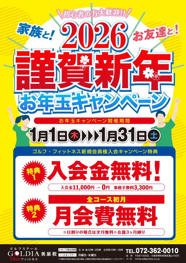 堺市美原区にあるGOLDIA美原校では、「2026 謹賀新年 お年玉キャンペーン」を実施します☆彡