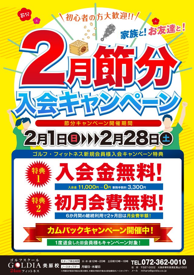 堺市美原区にあるGOLDIA美原校では、「2月節分入会キャンペーン」を実施します☆彡