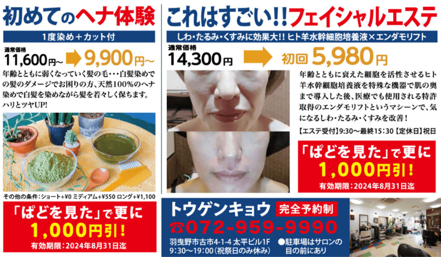 羽曳野市の『トウゲンキョウ』で、ヘナ&驚きのフェイシャルエステを体験してみませんか?