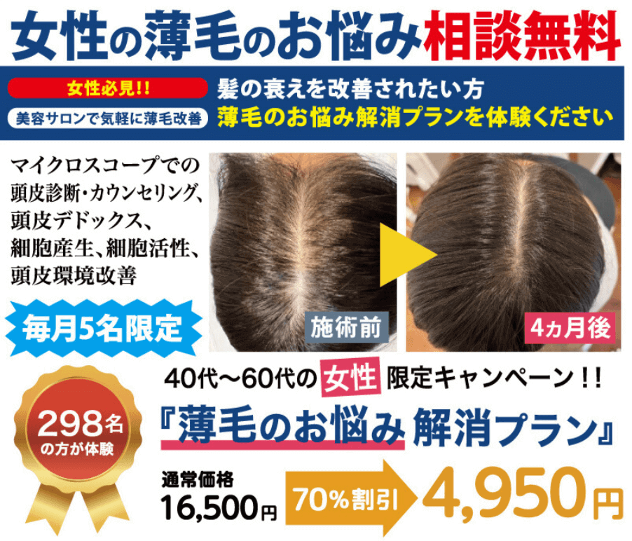 薄毛でお悩みの女性の方へ。まずは無料でご相談ください。