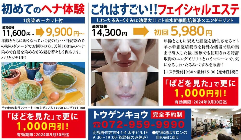 羽曳野市の『トウゲンキョウ』で、ヘナ&驚きのフェイシャルエステを体験してみませんか?