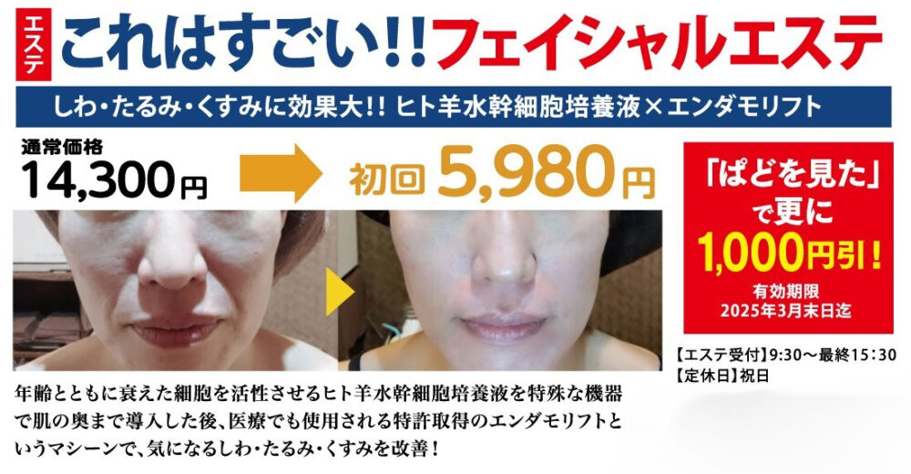 フェイシャルエステ ヒト羊水幹細胞培養液×エンダモリフト