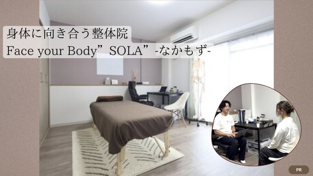 今回は、痛みの原因へ全身からダイレクトにアプローチしてくれる「身体に向き合う整体院 Face your Body”SOLA”-なかもず-」をご紹介しちゃいます♪