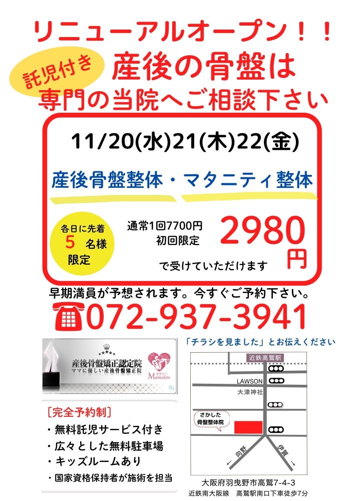 羽曳野市さかした骨盤整体院は、ソフトな整体で産前産後の多くのママさんや美容整体など幅広く対応しています。お一人お一人の症状にあった適切なケアをご提案しますのでどんなことでもお気軽にご相談ください!!