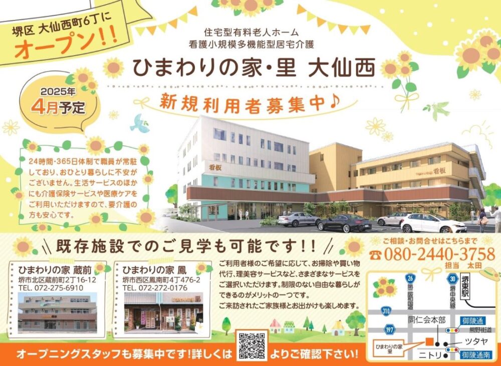 2025年4月に新施設オープン予定の『ひまわりの家・里 大仙西』では、オープンに伴い新規利用者様を募集しています☆