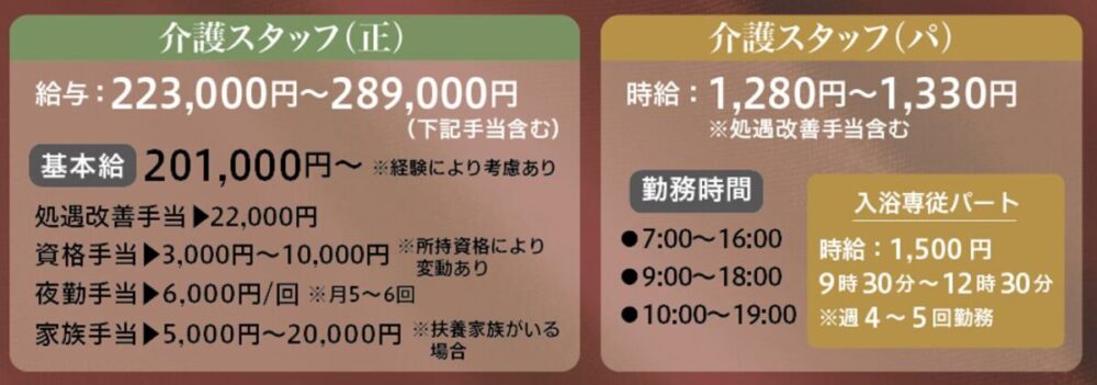 時給:1,280円~1,330円 ※処遇改善手当含む